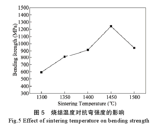 燒結(jié)溫度對(duì)Y-ZrO2陶瓷抗彎強(qiáng)度的影響如圖5所示。
