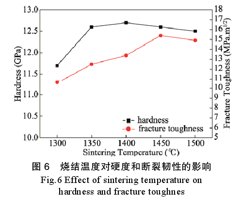燒結(jié)溫度對(duì)Y-ZrO2陶瓷硬度和斷裂韌性的影響如圖6所示。