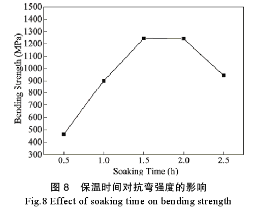 保溫時(shí)間對(duì)Y-ZrO2陶瓷抗彎強(qiáng)度的影響如圖8所示。